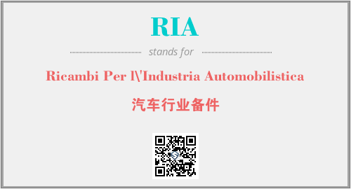 以上为Ricambi Per l\'Industria Automobilistica英文缩略词RIA的中文解释,以及该英文缩写在英语的流行度、分类和应用领域方面的信息。