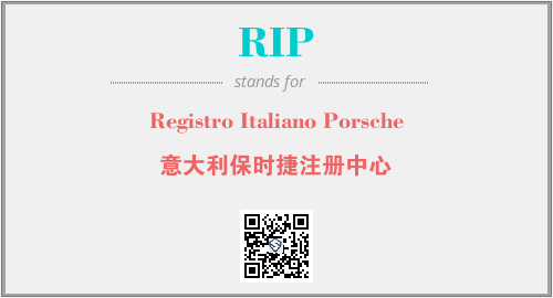 英文缩略词“RIP”经常作为“Registro Italiano Porsche”的英文缩写来使用,中文表示:“意大利保时捷注册中心”。本文将详细介绍英文缩写词RIP所代表英文单词,其对应的中文拼音、详细解释以及在英语中的流行度。此外,还有关于缩略词RIP的分类、应用领域及相关应用示例等。
