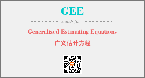 英文缩略词“GEE”经常作为“Generalized Estimating Equations”的英文缩写来使用,中文表示:“广义估计方程”。本文将详细介绍英文缩写词GEE所代表英文单词,其对应的中文拼音、详细解释以及在英语中的流行度。此外,还有关于缩略词GEE的分类、应用领域及相关应用示例等。