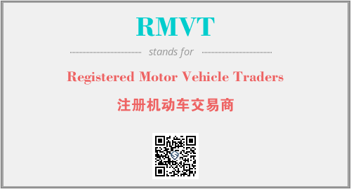 英文缩略词“RMVT”经常作为“Registered Motor Vehicle Traders”的英文缩写来使用,中文表示:“注册机动车交易商”。本文将详细介绍英文缩写词RMVT所代表英文单词,其对应的中文拼音、详细解释以及在英语中的流行度。此外,还有关于缩略词RMVT的分类、应用领域及相关应用示例等。