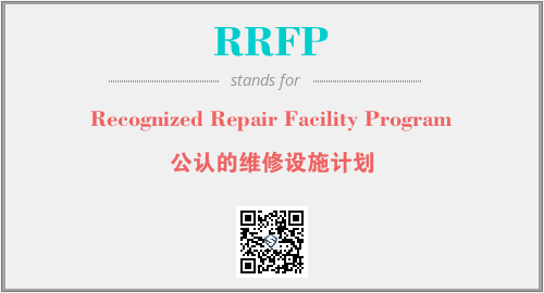 上述内容是“Recognized Repair Facility Program”作为“RRFP”的缩写,解释为“公认的维修设施计划”时的信息,以及英文缩略词RRFP所代表的英文单词,其对应的中文拼音、详细解释以及在英文中的流行度和相关分类、应用领域及应用示例等。