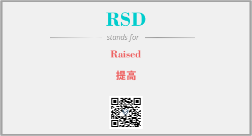 上述内容是“Raised”作为“RSD”的缩写,解释为“提高”时的信息,以及英文缩略词RSD所代表的英文单词,其对应的中文拼音、详细解释以及在英文中的流行度和相关分类、应用领域及应用示例等。