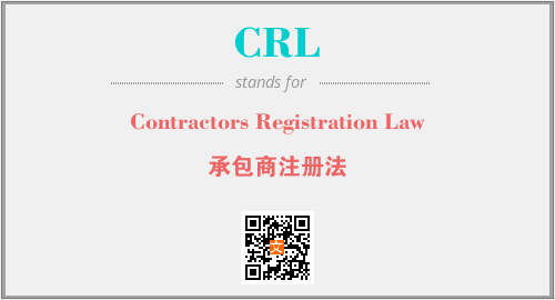 上述内容是“Contractors Registration Law”作为“CRL”的缩写,解释为“承包商注册法”时的信息,以及英文缩略词CRL所代表的英文单词,其对应的中文拼音、详细解释以及在英文中的流行度和相关分类、应用领域及应用示例等。