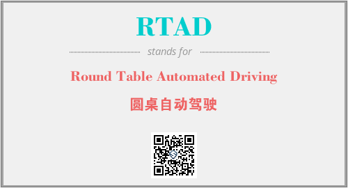 英文缩略词“RTAD”经常作为“Round Table Automated Driving”的英文缩写来使用,中文表示:“圆桌自动驾驶”。本文将详细介绍英文缩写词RTAD所代表英文单词,其对应的中文拼音、详细解释以及在英语中的流行度。此外,还有关于缩略词RTAD的分类、应用领域及相关应用示例等。