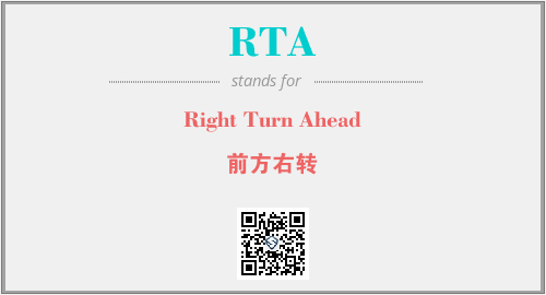 英文缩略词“RTA”经常作为“Right Turn Ahead”的英文缩写来使用,中文表示:“前方右转”。本文将详细介绍英文缩写词RTA所代表英文单词,其对应的中文拼音、详细解释以及在英语中的流行度。此外,还有关于缩略词RTA的分类、应用领域及相关应用示例等。