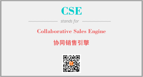 上述内容是“Collaborative Sales Engine”作为“CSE”的缩写,解释为“协同销售引擎”时的信息,以及英文缩略词CSE所代表的英文单词,其对应的中文拼音、详细解释以及在英文中的流行度和相关分类、应用领域及应用示例等。