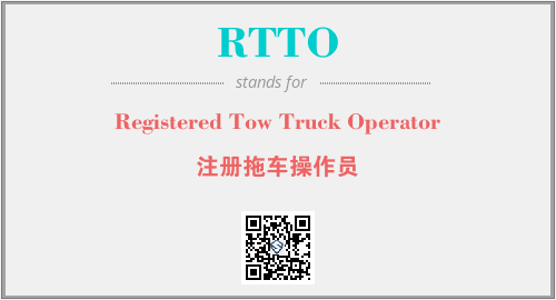 英文缩略词“RTTO”经常作为“Registered Tow Truck Operator”的英文缩写来使用,中文表示:“注册拖车操作员”。本文将详细介绍英文缩写词RTTO所代表英文单词,其对应的中文拼音、详细解释以及在英语中的流行度。此外,还有关于缩略词RTTO的分类、应用领域及相关应用示例等。