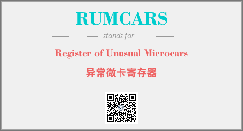 上述内容是“Register of Unusual Microcars”作为“RUMCARS”的缩写,解释为“异常微卡寄存器”时的信息,以及英文缩略词RUMCARS所代表的英文单词,其对应的中文拼音、详细解释以及在英文中的流行度和相关分类、应用领域及应用示例等。