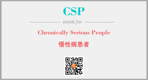 英文缩略词“CSP”经常作为“Chronically Serious People”的英文缩写来使用,中文表示:“慢性病患者”。本文将详细介绍英文缩写词CSP所代表英文单词,其对应的中文拼音、详细解释以及在英语中的流行度。此外,还有关于缩略词CSP的分类、应用领域及相关应用示例等。