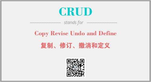 上述内容是“Copy Revise Undo and Define”作为“CRUD”的缩写,解释为“复制、修订、撤消和定义”时的信息,以及英文缩略词CRUD所代表的英文单词,其对应的中文拼音、详细解释以及在英文中的流行度和相关分类、应用领域及应用示例等。