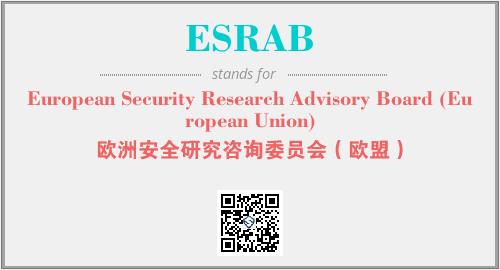 上述内容是“European Security Research Advisory Board (European Union)”作为“ESRAB”的缩写,解释为“欧洲安全研究咨询委员会(欧盟)”时的信息,以及英文缩略词ESRAB所代表的英文单词,其对应的中文拼音、详细解释以及在英文中的流行度和相关分类、应用领域及应用示例等。
