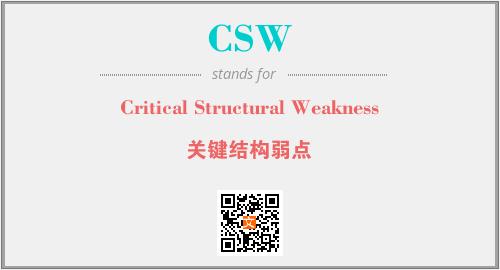上述内容是“Critical Structural Weakness”作为“CSW”的缩写,解释为“关键结构弱点”时的信息,以及英文缩略词CSW所代表的英文单词,其对应的中文拼音、详细解释以及在英文中的流行度和相关分类、应用领域及应用示例等。