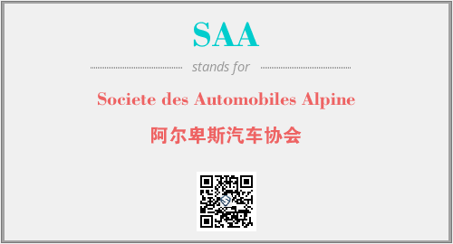 英文缩略词“SAA”经常作为“Societe des Automobiles Alpine”的英文缩写来使用,中文表示:“阿尔卑斯汽车协会”。本文将详细介绍英文缩写词SAA所代表英文单词,其对应的中文拼音、详细解释以及在英语中的流行度。此外,还有关于缩略词SAA的分类、应用领域及相关应用示例等。