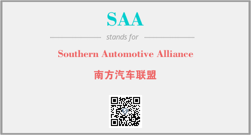 以上为Southern Automotive Alliance英文缩略词SAA的中文解释,以及该英文缩写在英语的流行度、分类和应用领域方面的信息。