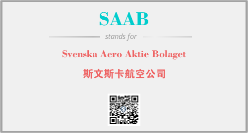 英文缩略词“SAAB”经常作为“Svenska Aero Aktie Bolaget”的英文缩写来使用,中文表示:“斯文斯卡航空公司”。本文将详细介绍英文缩写词SAAB所代表英文单词,其对应的中文拼音、详细解释以及在英语中的流行度。此外,还有关于缩略词SAAB的分类、应用领域及相关应用示例等。
