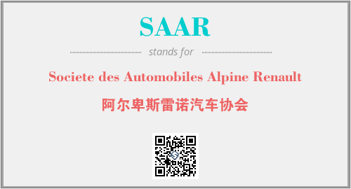 上述内容是“Societe des Automobiles Alpine Renault”作为“SAAR”的缩写,解释为“阿尔卑斯雷诺汽车协会”时的信息,以及英文缩略词SAAR所代表的英文单词,其对应的中文拼音、详细解释以及在英文中的流行度和相关分类、应用领域及应用示例等。