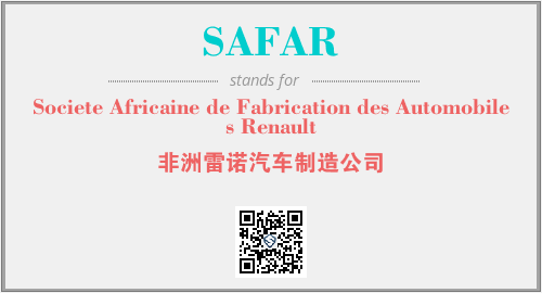 上述内容是“Societe Africaine de Fabrication des Automobiles Renault”作为“SAFAR”的缩写,解释为“非洲雷诺汽车制造公司”时的信息,以及英文缩略词SAFAR所代表的英文单词,其对应的中文拼音、详细解释以及在英文中的流行度和相关分类、应用领域及应用示例等。