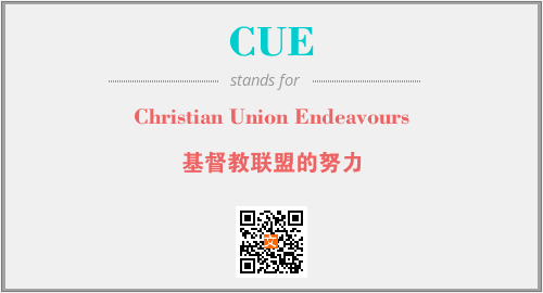上述内容是“Christian Union Endeavours”作为“CUE”的缩写,解释为“基督教联盟的努力”时的信息,以及英文缩略词CUE所代表的英文单词,其对应的中文拼音、详细解释以及在英文中的流行度和相关分类、应用领域及应用示例等。