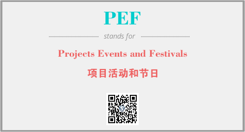 上述内容是“Projects Events and Festivals”作为“PEF”的缩写,解释为“项目活动和节日”时的信息,以及英文缩略词PEF所代表的英文单词,其对应的中文拼音、详细解释以及在英文中的流行度和相关分类、应用领域及应用示例等。