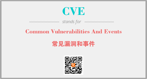英文缩略词“CVE”经常作为“Common Vulnerabilities And Events”的英文缩写来使用,中文表示:“常见漏洞和事件”。本文将详细介绍英文缩写词CVE所代表英文单词,其对应的中文拼音、详细解释以及在英语中的流行度。此外,还有关于缩略词CVE的分类、应用领域及相关应用示例等。