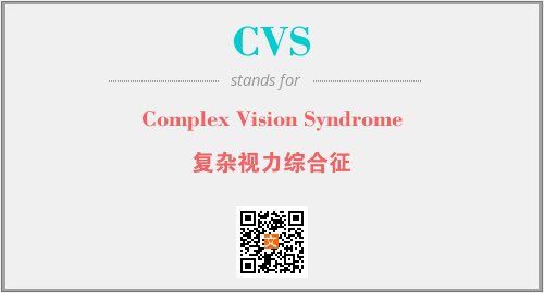 英文缩略词“CVS”经常作为“Complex Vision Syndrome”的英文缩写来使用,中文表示:“复杂视力综合征”。本文将详细介绍英文缩写词CVS所代表英文单词,其对应的中文拼音、详细解释以及在英语中的流行度。此外,还有关于缩略词CVS的分类、应用领域及相关应用示例等。