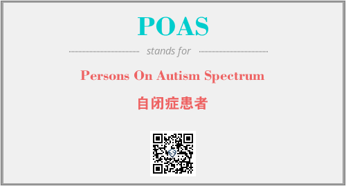 上述内容是“Persons On Autism Spectrum”作为“POAS”的缩写,解释为“自闭症患者”时的信息,以及英文缩略词POAS所代表的英文单词,其对应的中文拼音、详细解释以及在英文中的流行度和相关分类、应用领域及应用示例等。