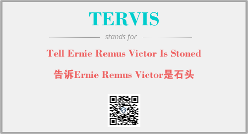 上述内容是“Tell Ernie Remus Victor Is Stoned”作为“TERVIS”的缩写,解释为“告诉Ernie Remus Victor是石头”时的信息,以及英文缩略词TERVIS所代表的英文单词,其对应的中文拼音、详细解释以及在英文中的流行度和相关分类、应用领域及应用示例等。