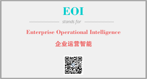 上述内容是“Enterprise Operational Intelligence”作为“EOI”的缩写,解释为“企业运营智能”时的信息,以及英文缩略词EOI所代表的英文单词,其对应的中文拼音、详细解释以及在英文中的流行度和相关分类、应用领域及应用示例等。