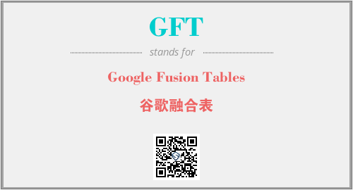 英文缩略词“GFT”经常作为“Google Fusion Tables”的英文缩写来使用,中文表示:“谷歌融合表”。本文将详细介绍英文缩写词GFT所代表英文单词,其对应的中文拼音、详细解释以及在英语中的流行度。此外,还有关于缩略词GFT的分类、应用领域及相关应用示例等。