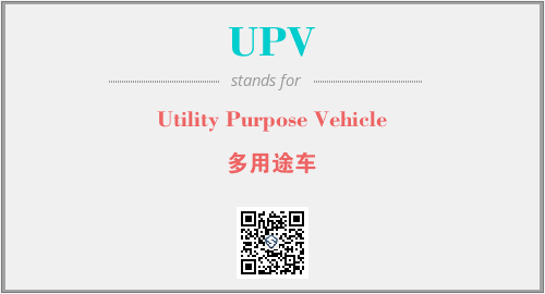英文缩略词“UPV”经常作为“Utility Purpose Vehicle”的英文缩写来使用,中文表示:“多用途车”。本文将详细介绍英文缩写词UPV所代表英文单词,其对应的中文拼音、详细解释以及在英语中的流行度。此外,还有关于缩略词UPV的分类、应用领域及相关应用示例等。