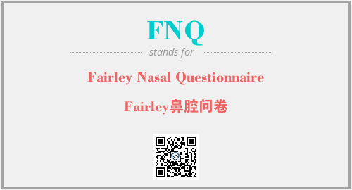 英文缩略词“FNQ”经常作为“Fairley Nasal Questionnaire”的英文缩写来使用,中文表示:“Fairley鼻腔问卷”。本文将详细介绍英文缩写词FNQ所代表英文单词,其对应的中文拼音、详细解释以及在英语中的流行度。此外,还有关于缩略词FNQ的分类、应用领域及相关应用示例等。