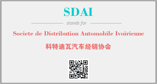 上述内容是“Societe de Distribution Automobile Ivoirienne”作为“SDAI”的缩写,解释为“科特迪瓦汽车经销协会”时的信息,以及英文缩略词SDAI所代表的英文单词,其对应的中文拼音、详细解释以及在英文中的流行度和相关分类、应用领域及应用示例等。