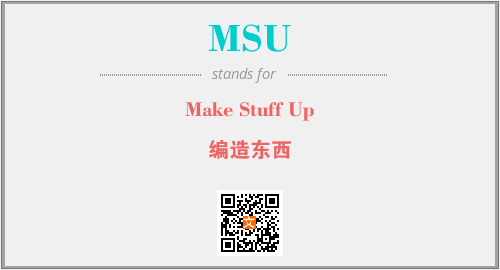 上述内容是“Make Stuff Up”作为“MSU”的缩写,解释为“编造东西”时的信息,以及英文缩略词MSU所代表的英文单词,其对应的中文拼音、详细解释以及在英文中的流行度和相关分类、应用领域及应用示例等。