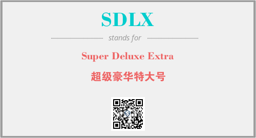 上述内容是“Super Deluxe Extra”作为“SDLX”的缩写,解释为“超级豪华特大号”时的信息,以及英文缩略词SDLX所代表的英文单词,其对应的中文拼音、详细解释以及在英文中的流行度和相关分类、应用领域及应用示例等。