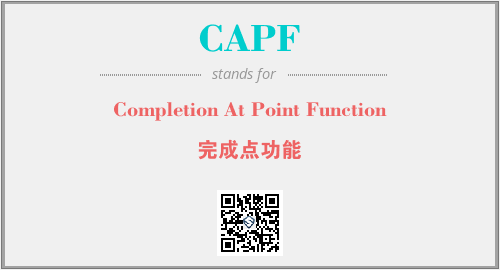 英文缩略词“CAPF”经常作为“Completion At Point Function”的英文缩写来使用,中文表示:“完成点功能”。本文将详细介绍英文缩写词CAPF所代表英文单词,其对应的中文拼音、详细解释以及在英语中的流行度。此外,还有关于缩略词CAPF的分类、应用领域及相关应用示例等。