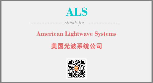 英文缩略词“ALS”经常作为“American Lightwave Systems”的英文缩写来使用,中文表示:“美国光波系统公司”。本文将详细介绍英文缩写词ALS所代表英文单词,其对应的中文拼音、详细解释以及在英语中的流行度。此外,还有关于缩略词ALS的分类、应用领域及相关应用示例等。
