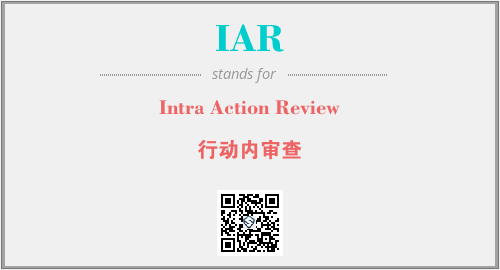 英文缩略词“IAR”经常作为“Intra Action Review”的英文缩写来使用,中文表示:“行动内审查”。本文将详细介绍英文缩写词IAR所代表英文单词,其对应的中文拼音、详细解释以及在英语中的流行度。此外,还有关于缩略词IAR的分类、应用领域及相关应用示例等。
