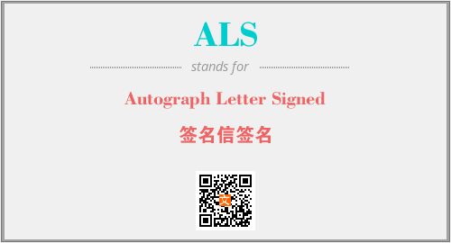 英文缩略词“ALS”经常作为“Autograph Letter Signed”的英文缩写来使用,中文表示:“签名信签名”。本文将详细介绍英文缩写词ALS所代表英文单词,其对应的中文拼音、详细解释以及在英语中的流行度。此外,还有关于缩略词ALS的分类、应用领域及相关应用示例等。
