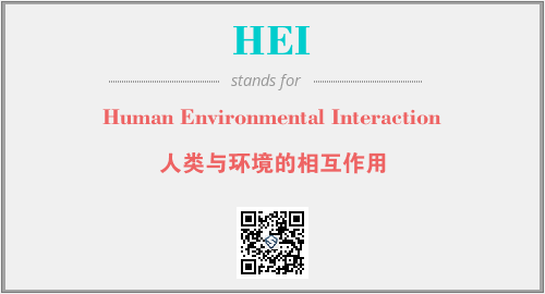 上述内容是“Human Environmental Interaction”作为“HEI”的缩写,解释为“人类与环境的相互作用”时的信息,以及英文缩略词HEI所代表的英文单词,其对应的中文拼音、详细解释以及在英文中的流行度和相关分类、应用领域及应用示例等。