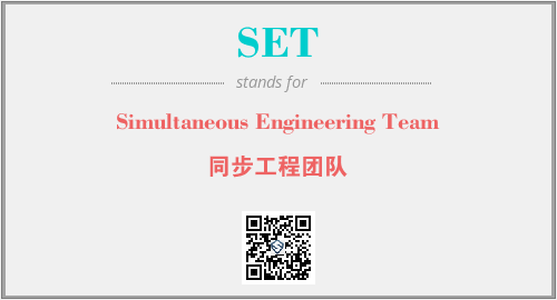 上述内容是“Simultaneous Engineering Team”作为“SET”的缩写,解释为“同步工程团队”时的信息,以及英文缩略词SET所代表的英文单词,其对应的中文拼音、详细解释以及在英文中的流行度和相关分类、应用领域及应用示例等。