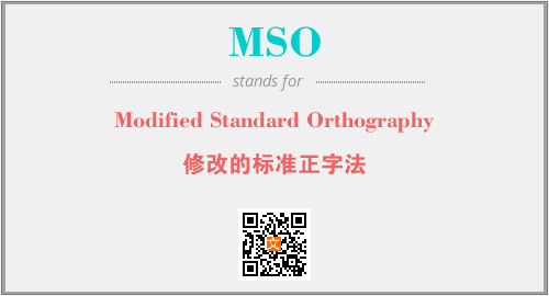上述内容是“Modified Standard Orthography”作为“MSO”的缩写,解释为“修改的标准正字法”时的信息,以及英文缩略词MSO所代表的英文单词,其对应的中文拼音、详细解释以及在英文中的流行度和相关分类、应用领域及应用示例等。