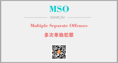 上述内容是“Multiple Separate Offenses”作为“MSO”的缩写,解释为“多次单独犯罪”时的信息,以及英文缩略词MSO所代表的英文单词,其对应的中文拼音、详细解释以及在英文中的流行度和相关分类、应用领域及应用示例等。
