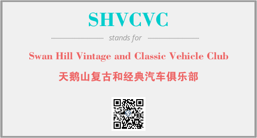 上述内容是“Swan Hill Vintage and Classic Vehicle Club”作为“SHVCVC”的缩写,解释为“天鹅山复古和经典汽车俱乐部”时的信息,以及英文缩略词SHVCVC所代表的英文单词,其对应的中文拼音、详细解释以及在英文中的流行度和相关分类、应用领域及应用示例等。