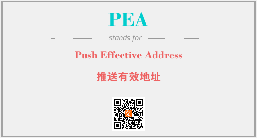 上述内容是“Push Effective Address”作为“PEA”的缩写,解释为“推送有效地址”时的信息,以及英文缩略词PEA所代表的英文单词,其对应的中文拼音、详细解释以及在英文中的流行度和相关分类、应用领域及应用示例等。
