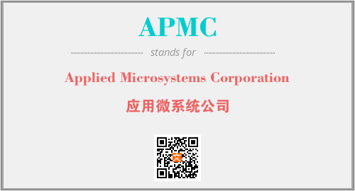 上述内容是“Applied Microsystems Corporation”作为“APMC”的缩写,解释为“应用微系统公司”时的信息,以及英文缩略词APMC所代表的英文单词,其对应的中文拼音、详细解释以及在英文中的流行度和相关分类、应用领域及应用示例等。