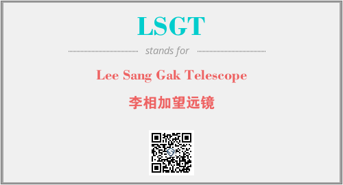 英文缩略词“LSGT”经常作为“Lee Sang Gak Telescope”的英文缩写来使用,中文表示:“李相加望远镜”。本文将详细介绍英文缩写词LSGT所代表英文单词,其对应的中文拼音、详细解释以及在英语中的流行度。此外,还有关于缩略词LSGT的分类、应用领域及相关应用示例等。