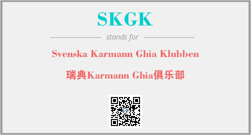 英文缩略词“SKGK”经常作为“Svenska Karmann Ghia Klubben”的英文缩写来使用,中文表示:“瑞典Karmann Ghia俱乐部”。本文将详细介绍英文缩写词SKGK所代表英文单词,其对应的中文拼音、详细解释以及在英语中的流行度。此外,还有关于缩略词SKGK的分类、应用领域及相关应用示例等。