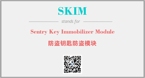 英文缩略词“SKIM”经常作为“Sentry Key Immobilizer Module”的英文缩写来使用,中文表示:“防盗钥匙防盗模块”。本文将详细介绍英文缩写词SKIM所代表英文单词,其对应的中文拼音、详细解释以及在英语中的流行度。此外,还有关于缩略词SKIM的分类、应用领域及相关应用示例等。