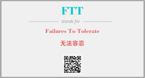 上述内容是“Failures To Tolerate”作为“FTT”的缩写,解释为“无法容忍”时的信息,以及英文缩略词FTT所代表的英文单词,其对应的中文拼音、详细解释以及在英文中的流行度和相关分类、应用领域及应用示例等。