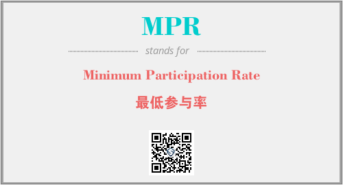 以上为Minimum Participation Rate英文缩略词MPR的中文解释,以及该英文缩写在英语的流行度、分类和应用领域方面的信息。